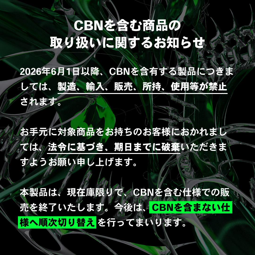 CBD150mg(濃度15%)、CBN500mg(50%)、CBG50mg(5%)、CBT200mg(20%)